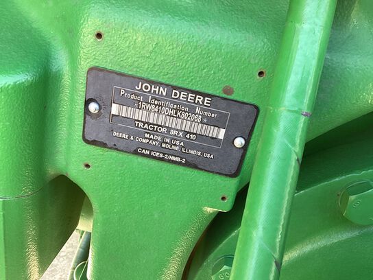 • 2021 JOHN DEERE 8RX 410 SIGNATURE EDITION, E23 (40K) W/RH REVERSER BUMP, 84 GPM DUAL HYD PUMP, 6 SCVS, LARGE 1000 PTO, 24" TRACKS, 120" TREAD SPACING, STALK ROLLERS, UPPER/LOWER FENDERS, COLD WEATHER PKG, FRONT WEIGHT SUPPORT, ULTIMATE COMFORT/VISIBILITY, AIR SEAT PLUS CAB SUSPENSION, 4600 COMMAND CENTER W/AUTOTRAC/AUTOMATION 3.0